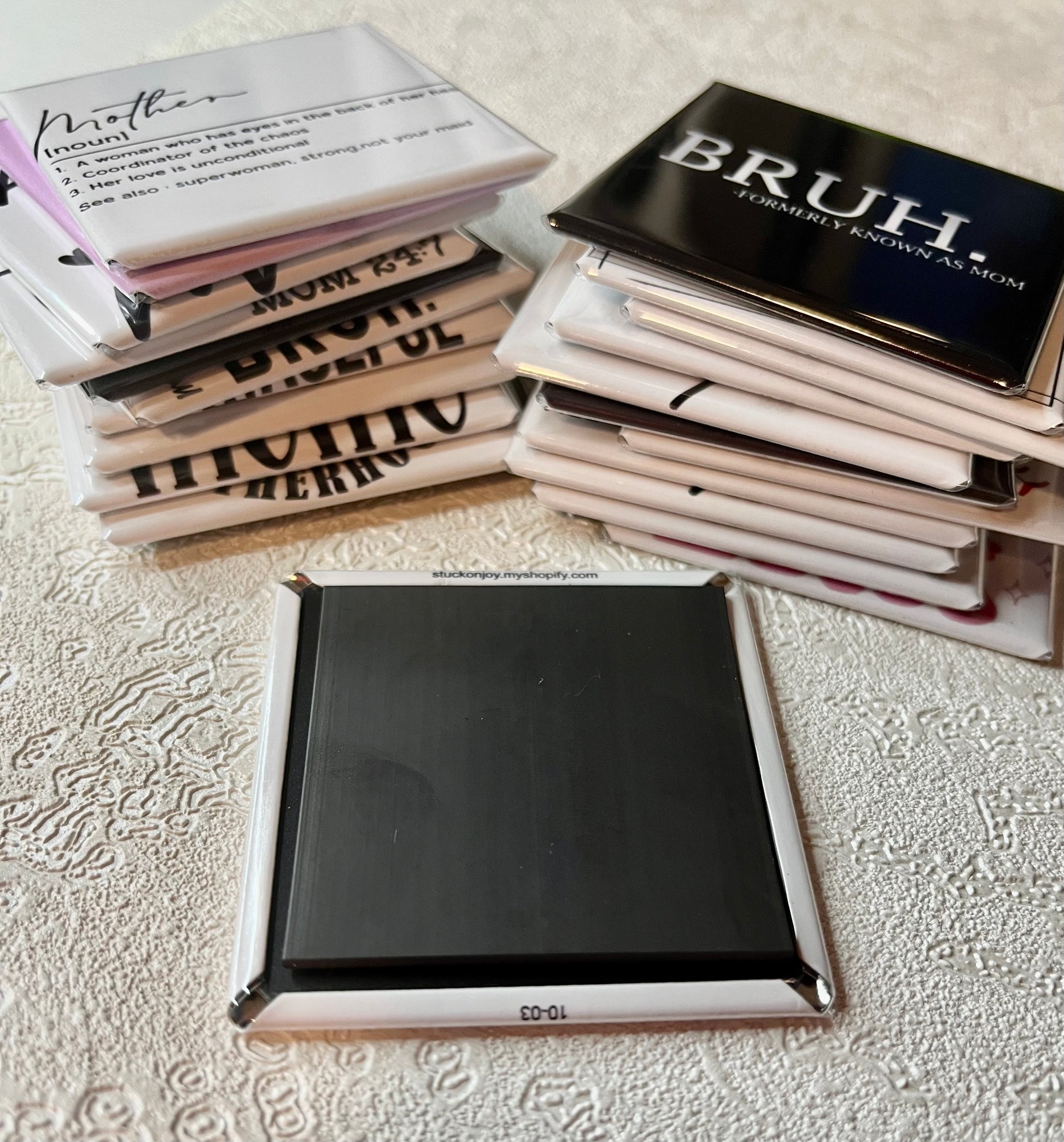 2"x2" quality square magnet that is highly durable and crafted using premium materials sourced from the USA. Our unique graphics add a touch of personality, making it a perfect decorative item for your refrigerator, locker, or whiteboard. Additionally, these magnets can be used as a small and thoughtful gift, as table confetti, or as stocking stuffers. These magnets are STRONG and can securely hold up to 7 sheets of standard letter sized paper!