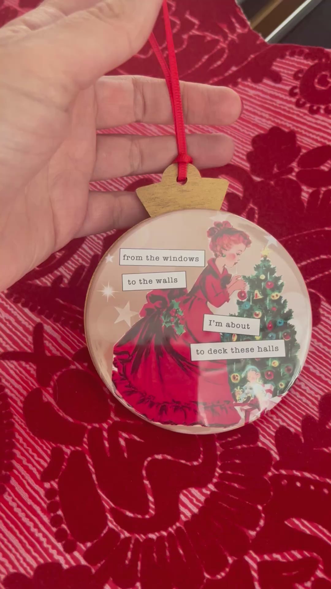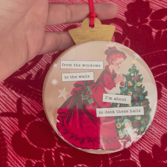 I'M ABOUT TO DECK THESE HALLS - VINTAGE HOLIDAY LADIES CHRISTMAS ORNAMENT