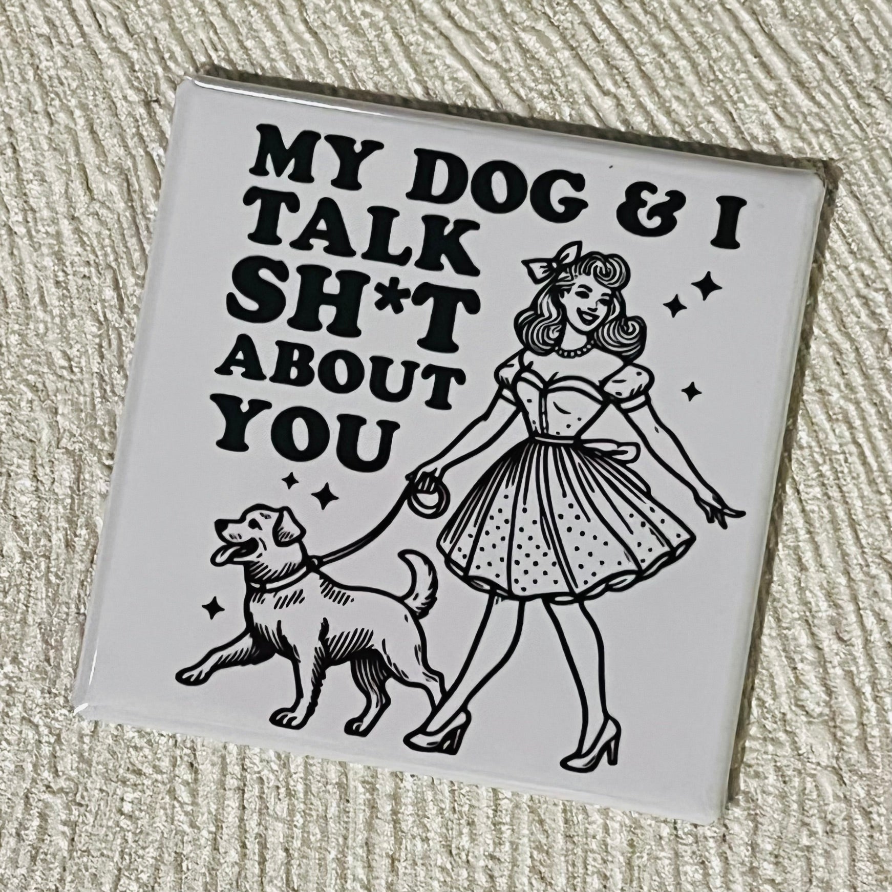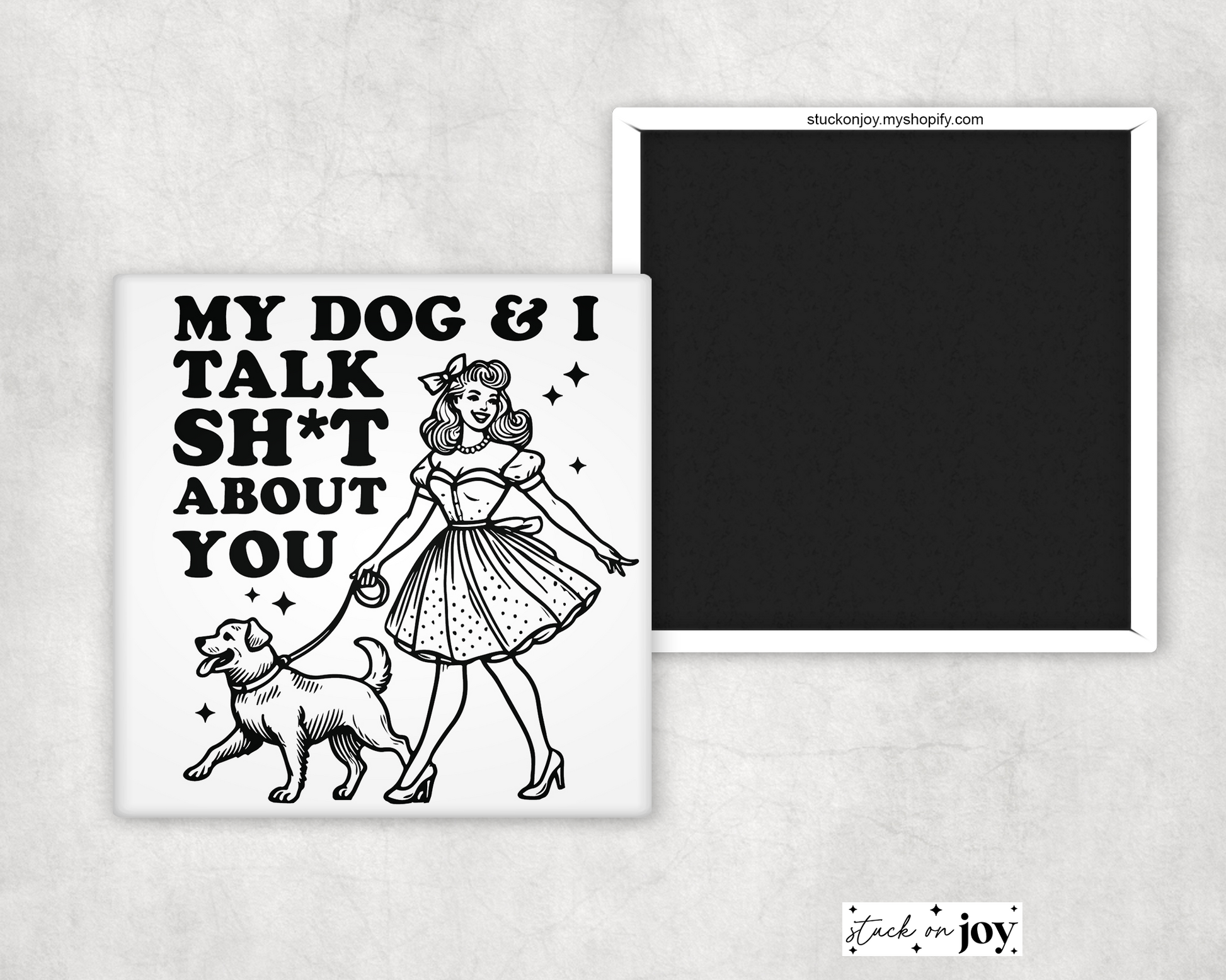 MY DOG AND I TALK SHIT ABOUT YOU 2x2 SQUARE MAGNET
