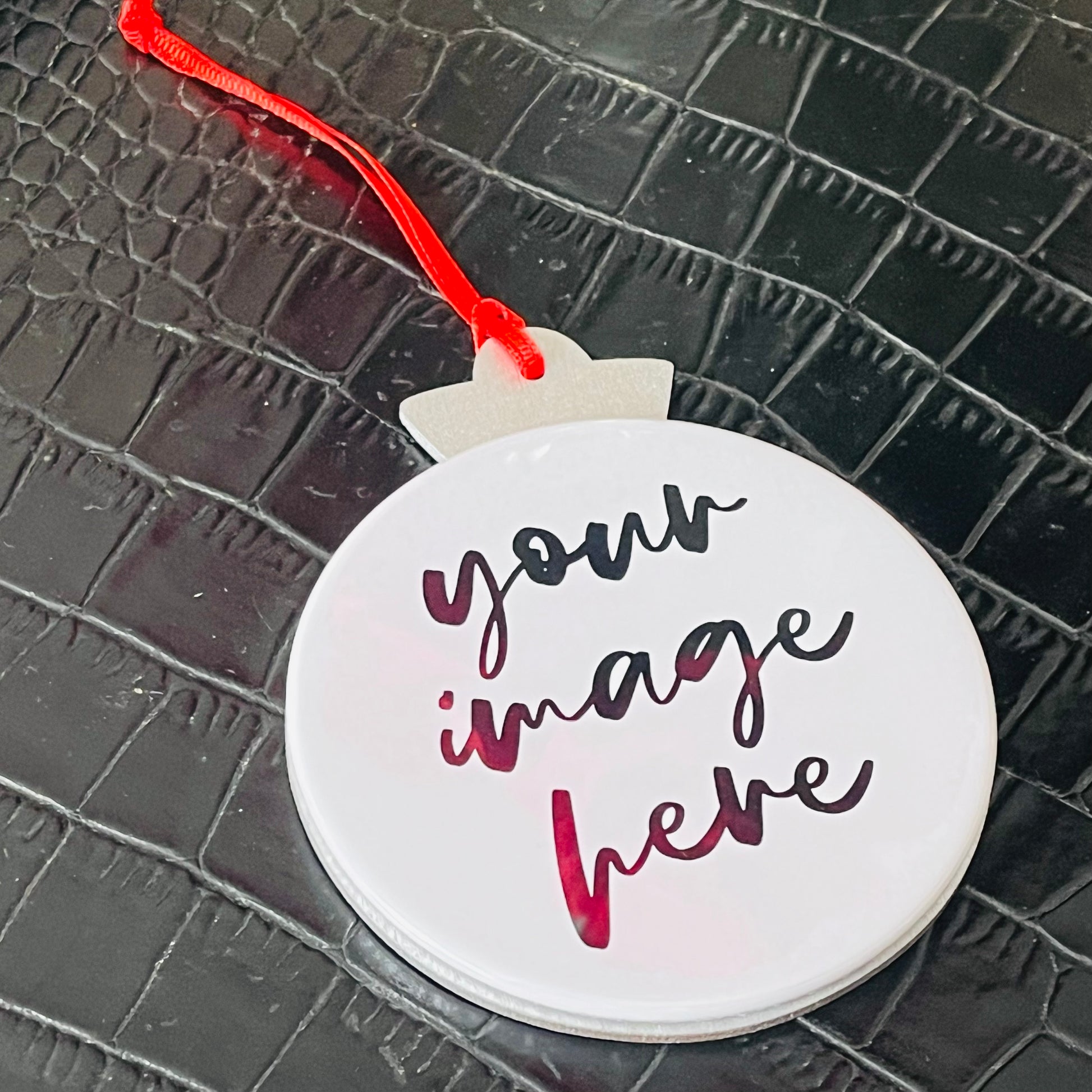 🎄Turn your favorite photo into a Christmas ornament with our 3.5" Personalized Photo Round Button Ornament. Personalize with any photo, and choose your desired wood color, color photo border, and ribbon color. Our ornaments are printed with the highest quality photo paper, then and hand-pressed into a quality 3.5" button, which is then attached to a quality wood backing.