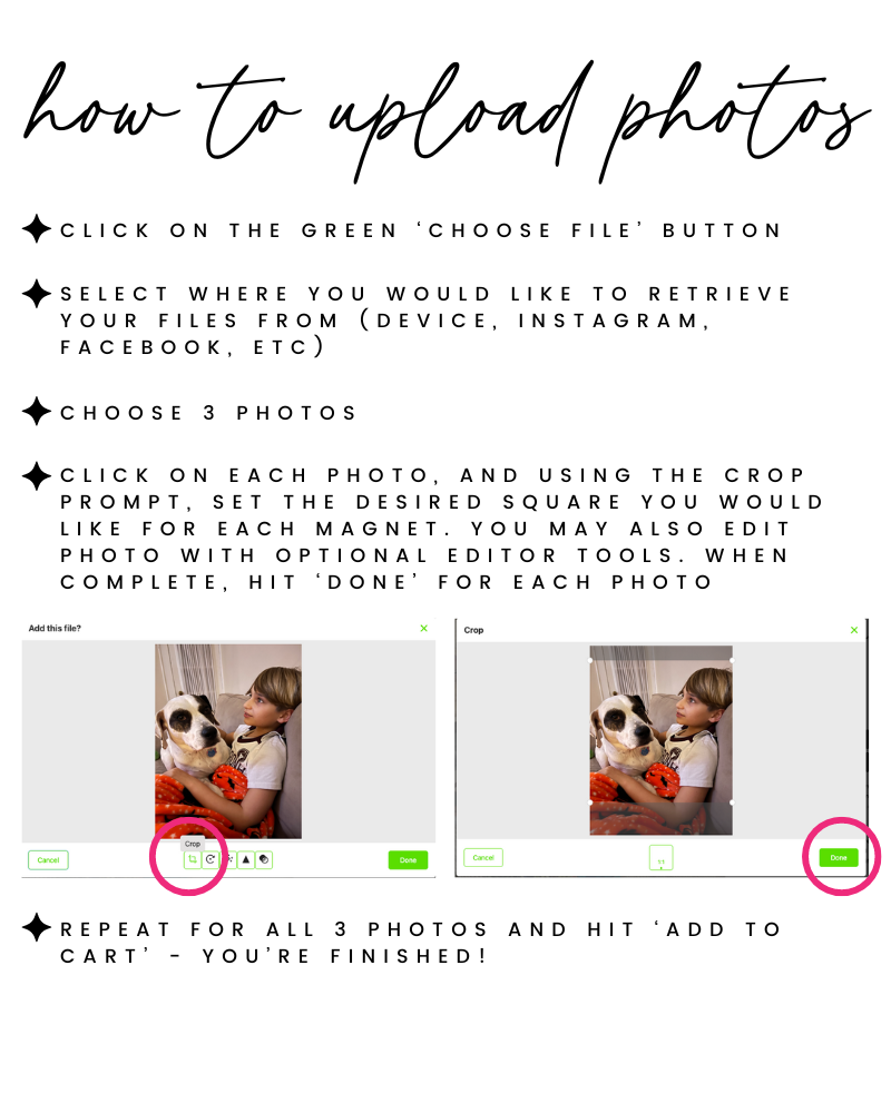 For more details on how to upload your photo selections, click the photo in the gallery for detailed instructions!